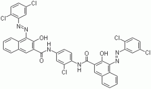 Inglise pseudonüüm: CIPigment Red 144; PR144; Kromoftaalpunane BRN; 2-Naffaleenkarboksamiid, N, N '- (2-kloro-1,4-fenüleen) bis [4 - [(2,5-diklorofenüül) aso] - 3-hüdroksü (4E, 4'E) -N, N' - (2-klorobenseen-1,4-diüül) bis {4- [2- (2,5-diklorofenüül) hüdrasinüülideen] -3-okso-3,4-dihüdronaftaleen-2-karboksamiid}; N- [2-kloro-4 - [[4- (2,5-diklorofenüül) aso-3-hüdroksünaftaleen-2-karbonüül] amino] fenüül] -4- (2,5-diklorofenüül) aso-3- hüdroksünaftaleen-2-karboksamiid; Suur molekulaarne punane BR